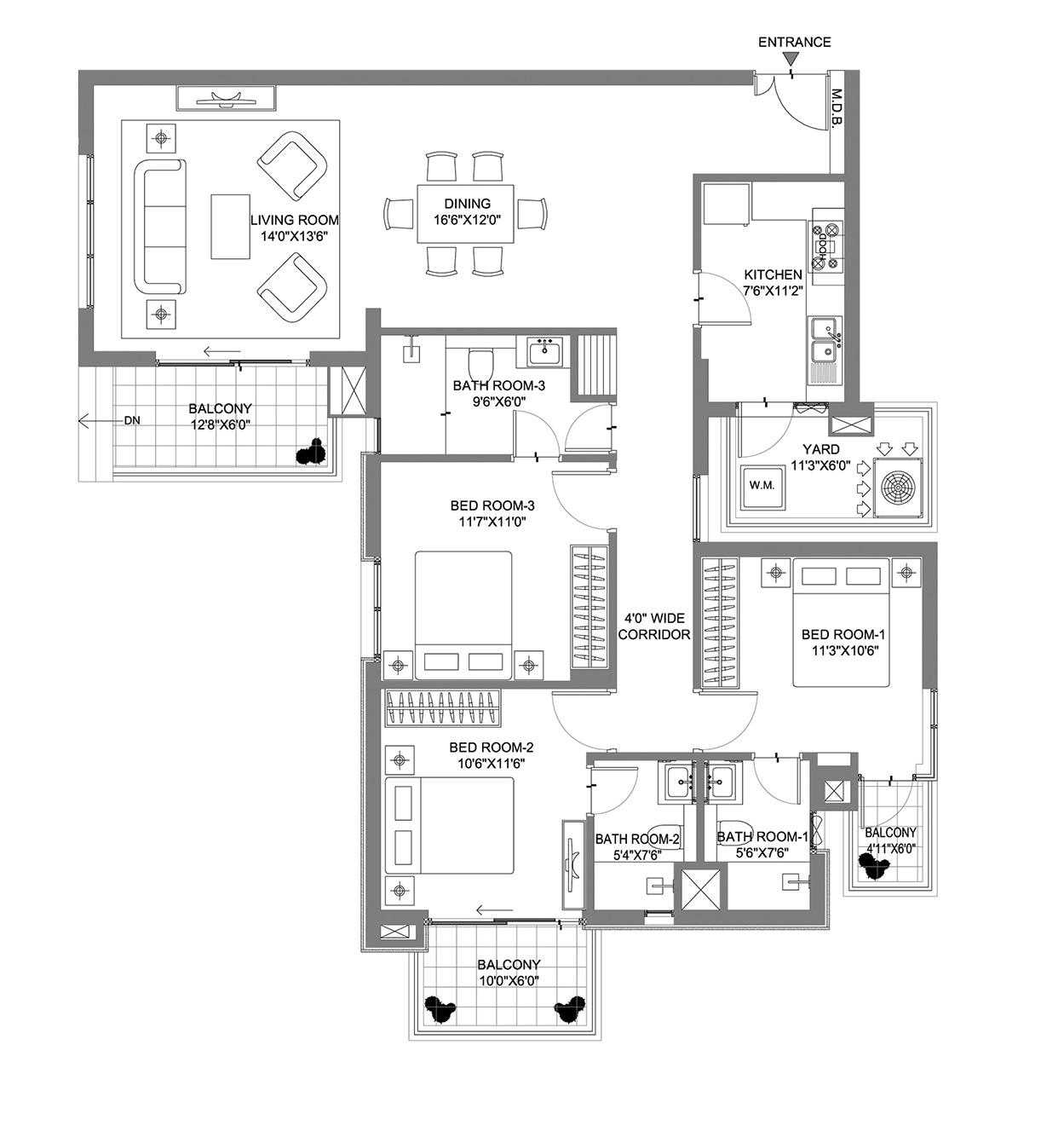 3 BHK + Servant + Terrace (2660 sq. ft.)