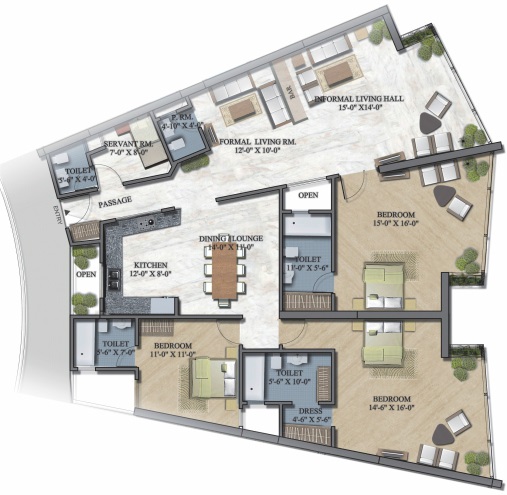 3 BHK + Store + Dress + Servant Room ( 3350 Sq.Ft. )